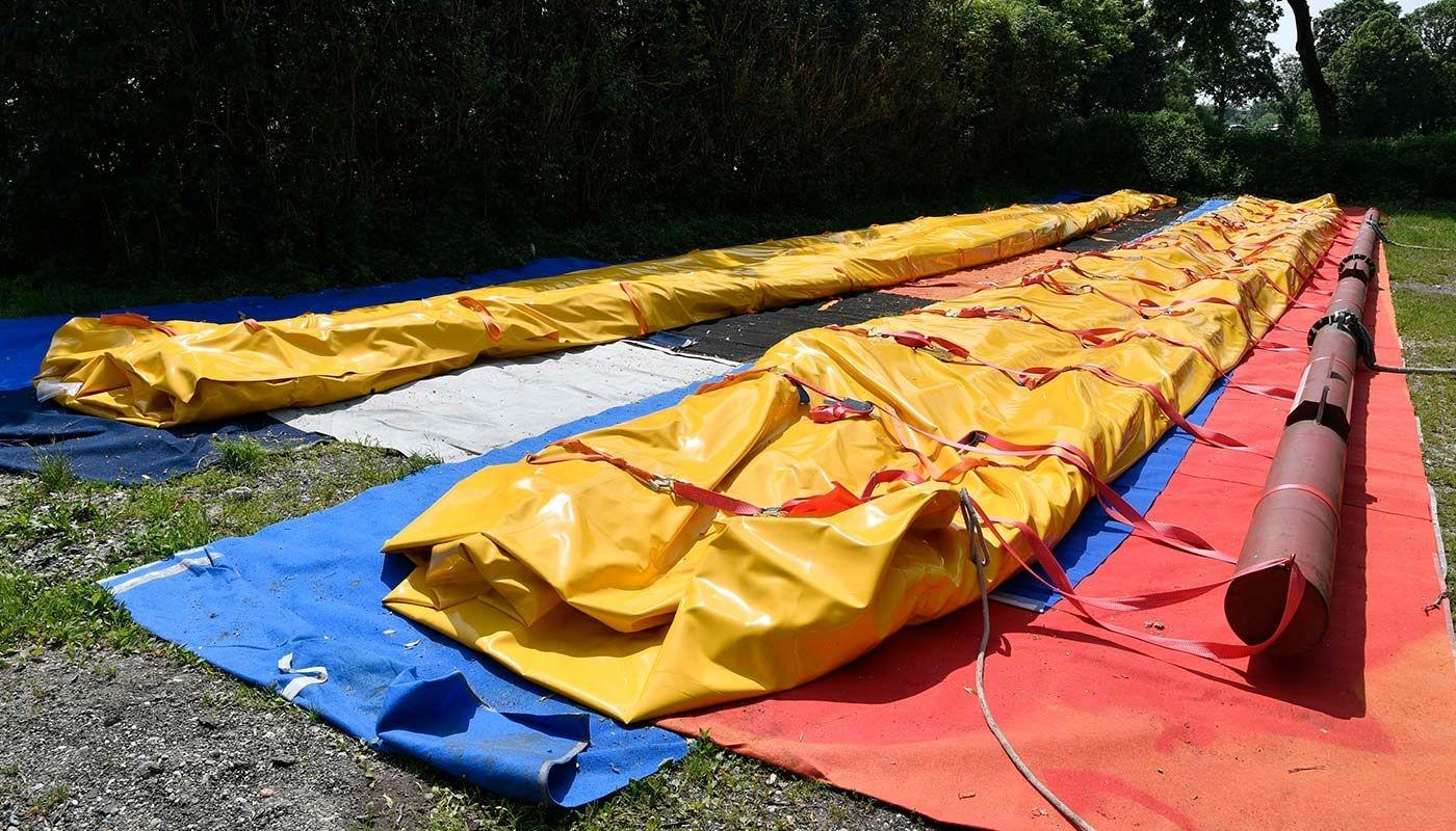 Stimmt - eigentlich ist der Aufmacher vollkommen falsch, denn ausgetausch werden nicht die transparenten Segmente, sondern ausgetauscht werden zwei der dazwischen gespannten weissen Felder. Der Hubschrauber hat das Material in eingerollter Form transportiert... ich glaube bei einem flächigen 1.100 qm Segment gäbe es gewisse aerodynamische Probleme... ;) :)